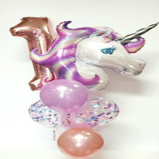 the setup above for a young man who was a huge fan of unicorn. Balloons in the